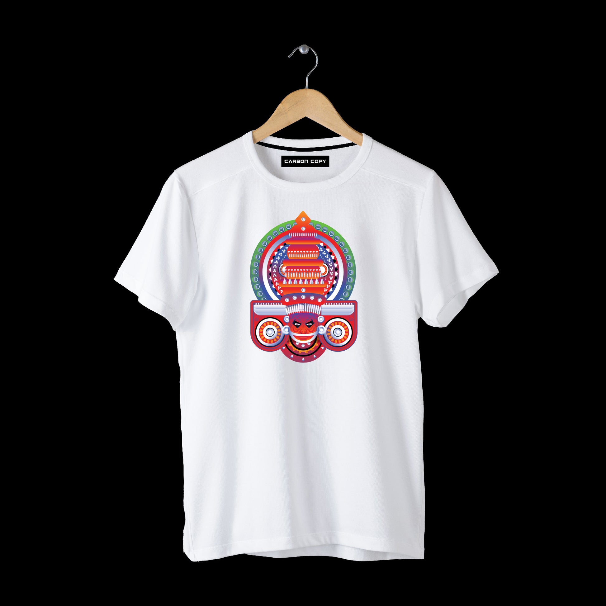 Experience the epitome of style and comfort with our premium unisex T-shirt, featuring a captivating Theyyam design that is truly one-of-a-kind