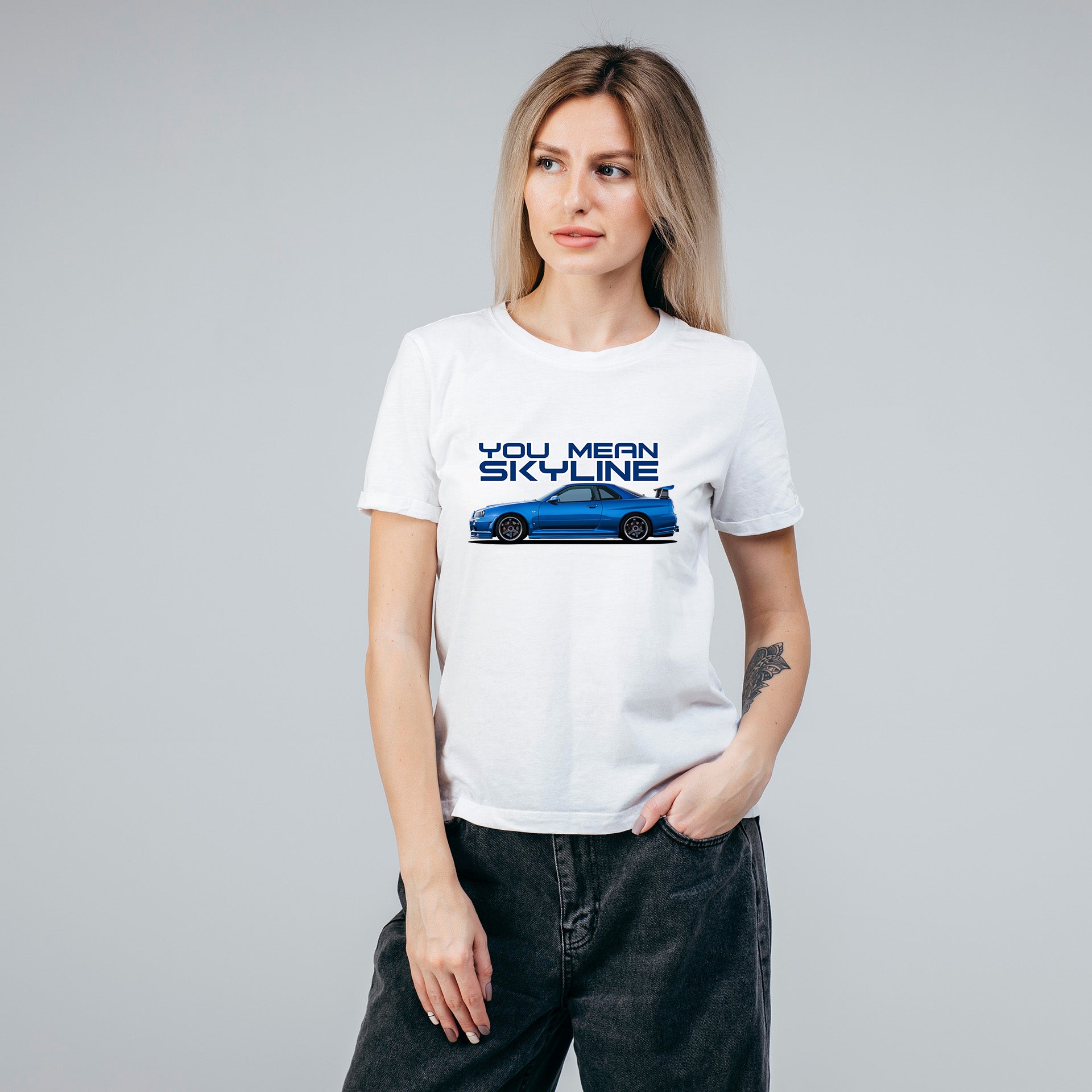 Nissan Skyline R-34 GT Bayside | JDM | YOU MEAN SKYLINE | CARBON COPY | Premium Women T-Shirt | Automotive